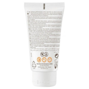 Crème solaire très haute protection SPF50+ spécialement formulée pour les peaux fragiles sèches, sans parfum et résistante à l’eau.