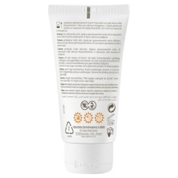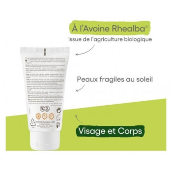 Crème solaire SPF50+ spécialement formulée pour les peaux fragiles sèches, offrant une très haute protection tout en renforçant la barrière cutanée.