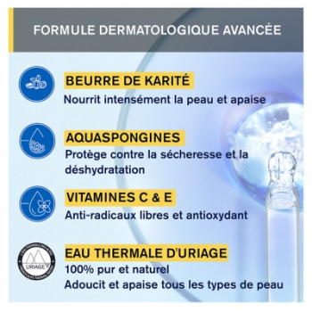 • Apaise instantanément grâce à la glycyrrhétinate et à l’Eau Thermale d’Uriage