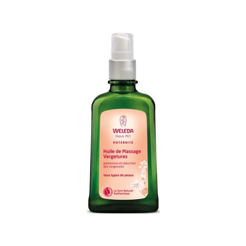 Pour répondre aux besoins spécifiques de la femme enceinte, Weleda a créé l’Huile de Massage Vergetures à base d’huiles d’amande douce, de jojoba bio et de germe de blé naturellement riche en vitamine E et enrichie en extrait d’arnica bio. Appliquée en massages dès le début de la grossesse, elle favorise la prévention et la réduction des vergetures, en améliorant l’élasticité et la tonicité de la peau. Testée sous contrôle dermatologique.