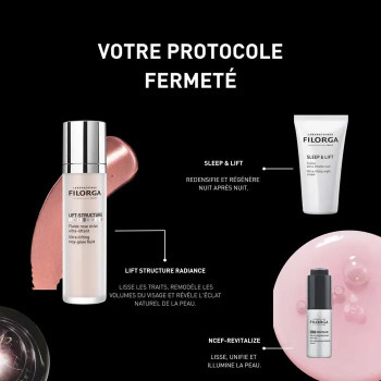 • Lift-Structure Radiance : effet lift immédiat, teint unifié et lumineux grâce à son complexe à base de collagène et de goji