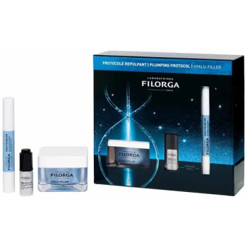Le Coffret Hyalu-Filler de Filorga est une routine hydratation et anti-âge complète. Grâce à l’action combinée de la crème Hyalu-Filler, du soin lèvres et du sérum NCEF-Revitalize, il repulpe la peau, comble les rides et redonne éclat et souplesse au visage.