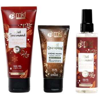 • Coffret 3 soins complémentaires : gel douche, crème mains et brume parfumée
