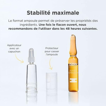 Soin du visage en ampoules, formulé pour hydrater intensément, protéger la peau contre le stress oxydatif et prévenir la perte de fermeté et les premières rides.