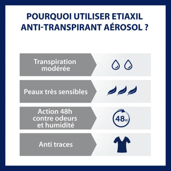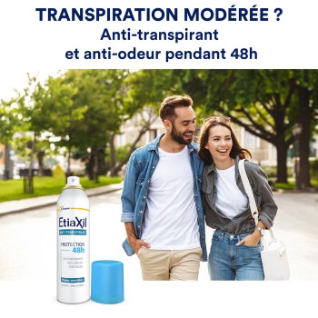 Etiaxil Déodorant Anti-Transpirant Protection 48H assure une protection efficace contre la transpiration pendant 48 heures tout en respectant les peaux sensibles et les vêtements.