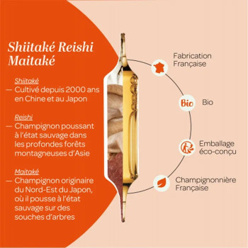 • Shiitaké bio dosé à 9000 mg équivalent plante fraîche par ampoule