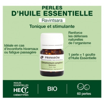 Des mini-capsules BIO prédosées à base d’huile essentielle de ravintsara, pratiques et faciles à avaler.