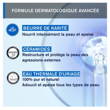 • Convient aux peaux très sèches, irritées ou à tendance atopique (eczéma inclus).