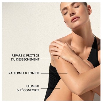 Un baume corps fondant et onctueux qui nourrit intensément, raffermit la peau et améliore son élasticité, tout en apportant confort, luminosité et fini soyeux.