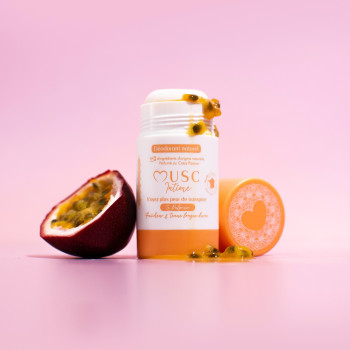 Un déodorant solide au parfum fruit de la passion, efficace toute la journée et respectueux de la peau comme de l’environnement.
