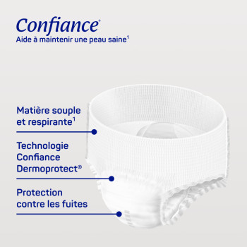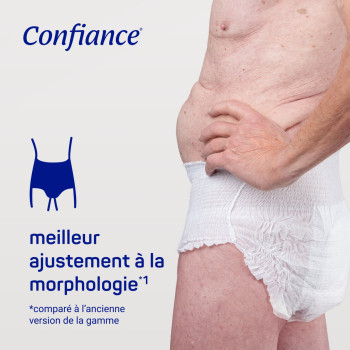 Culotte d’incontinence absorbante pour adultes, adaptée aux fuites urinaires modérées à sévères, offrant jusqu’à 12 h de garde au sec.
