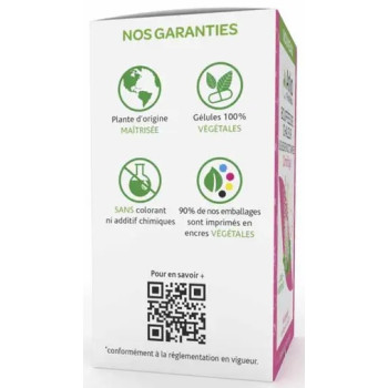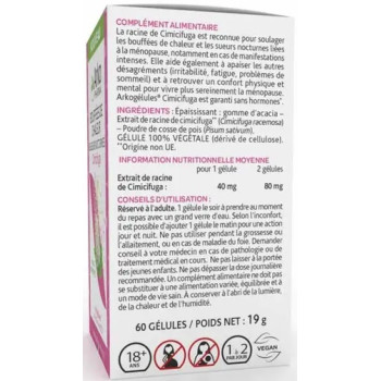 ÉPAISSISSANT : GOMME D’ACACIA • EXTRAIT DE RACINE DE CIMICIFUGA (CIMICIFUGA RACEMOSA) • POUDRE DE COSSE DE POIS (PISUM SATIVUM) • GÉLULE 100 % VÉGÉTALE (DÉRIVÉ DE CELLULOSE).