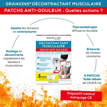 Des patchs chauffants à effet chaleur apaisante conçus pour favoriser la détente musculaire localisée et soulager les tensions jusqu’à 8 heures.