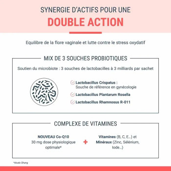• Probiotiques ciblés pour favoriser l’équilibre du microbiote intestinal et vaginal, essentiel à l’implantation embryonnaire