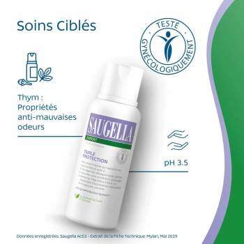 Saugella Triple Protection, Soin Lavant Intime à base de Thym et de Zinc, pour les Femmes ayant besoin d'une Protection Renforcée durant la grossesse, pendant les règles, pendant le sport…